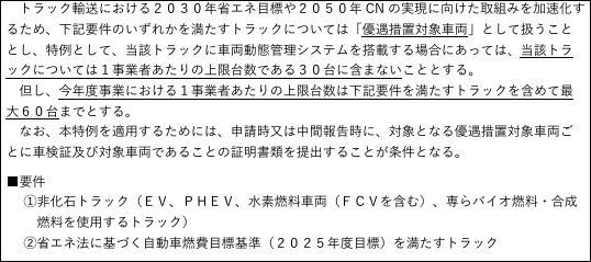 国土交通省と経済産業省資源エネルギー庁との連携事業、令和7年度「トラック輸送省エネ化推進事業」について、6月30日に事業概要が公表されました。