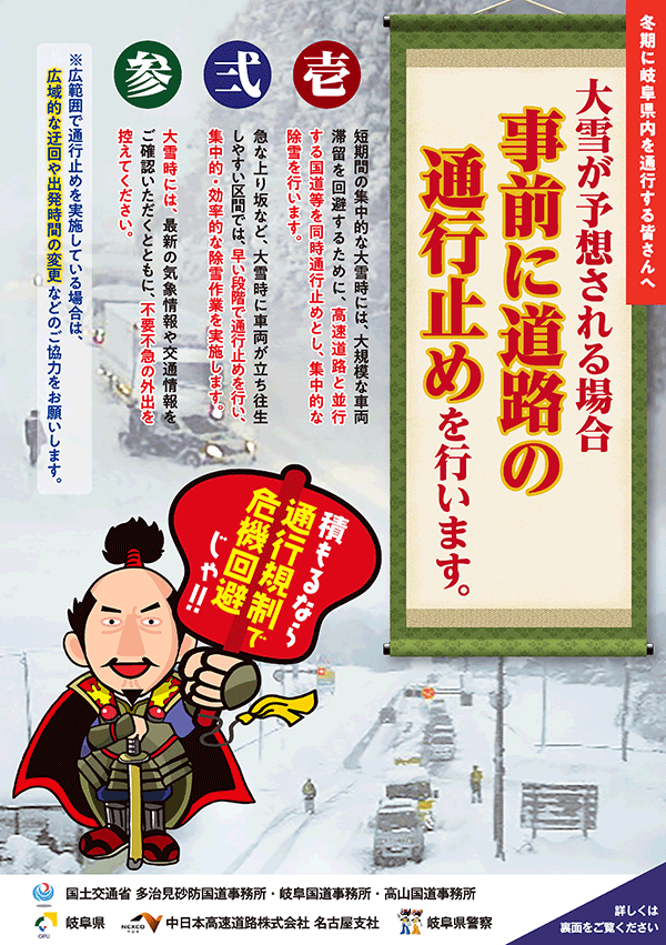 高山土木事務所より、「岐阜県内における大雪時の通行止め」についてお知らせがありました。